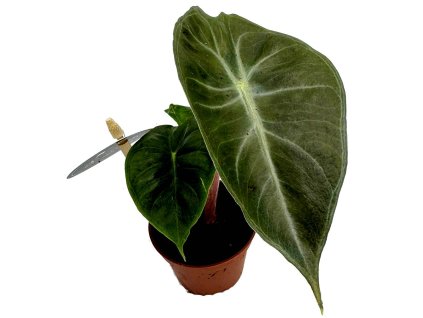 Metalicky zelená, vzácná Alocasia s růžovými stonky a elegantním vzhledem. Průměr květináče 6 cm, výška cca 15 cm.