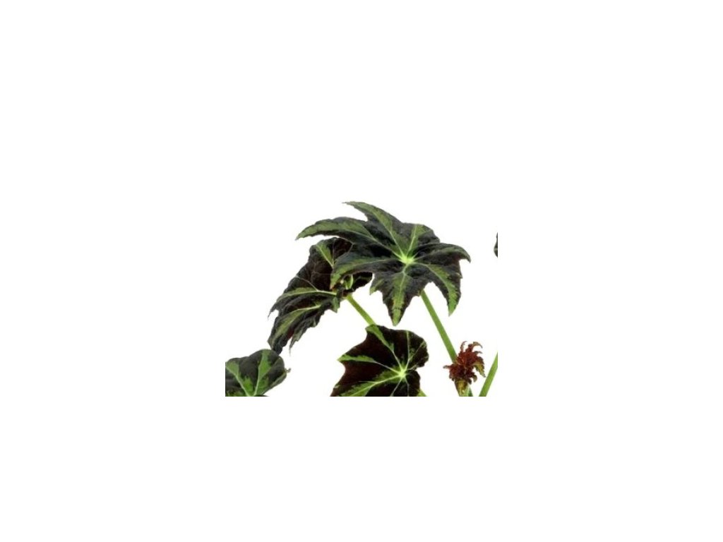 Vzácná, zajímavá Begonia s úchvatnou kresbou a barvou listů. Raritní kousek. Průměr květináče 12 cm.
