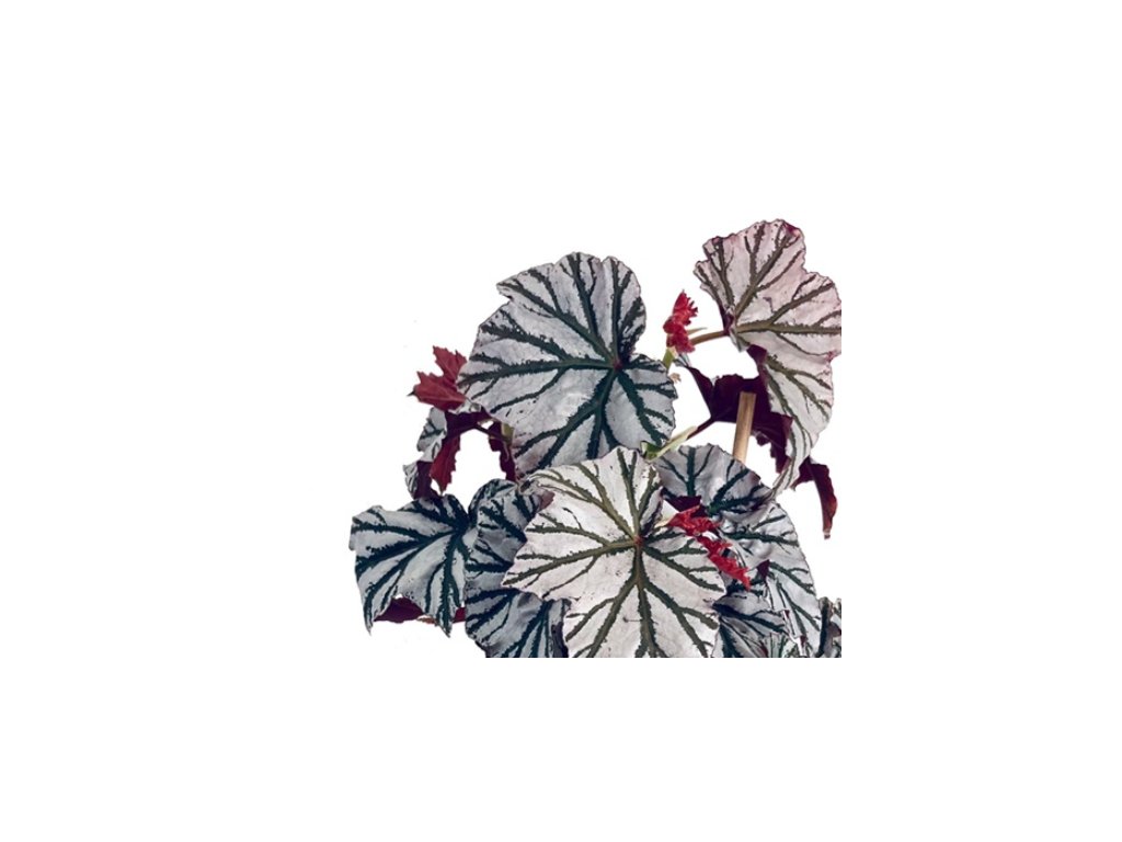 Zajímavá Begonia s listy stříbrno červené barvy. Průměr květináče 13 cm.