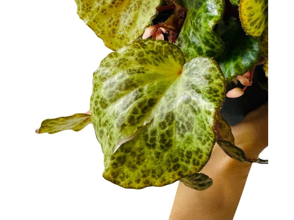 Nádherná, vzácná Begonie s růžovými tečkami. Hůře k sehnání, překrásný kultivar. Průměr květináče 12 cm.