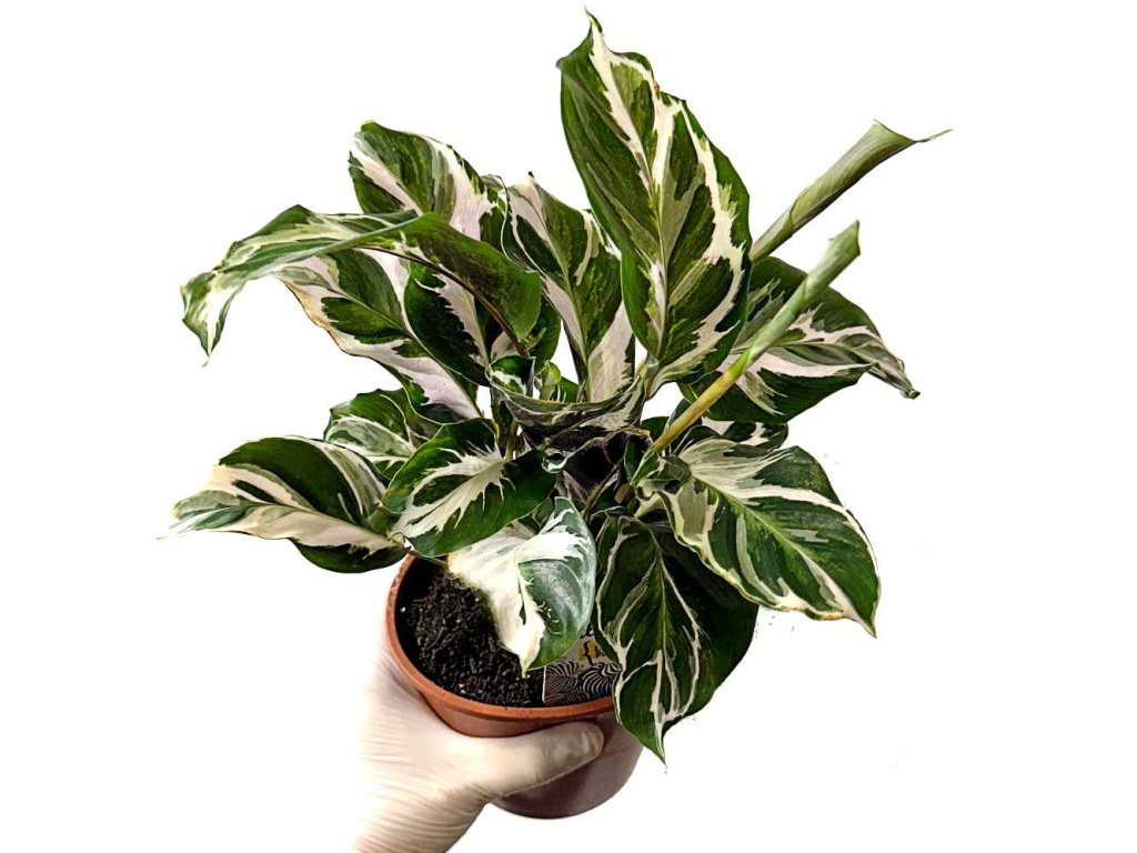 Nádherná Calathea, kultivar velmi zajímavé a netradiční barvy. Zvláštní prolínání růžové a bílé. Nutnost pro všechny milovníky těchto krásek. Průměr květináče 6 cm.