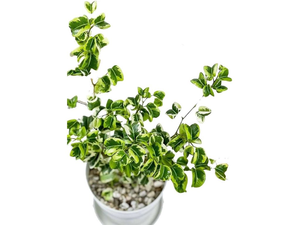 Nádherný, krásně vybarvený Ficus el. Tineke. Výška okolo 28 cm, květináč 9 cm.