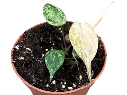 Jedinečný, úchvatný Philodendron RING OF FIRE s přkrásnou kresbou a variegací na listech. Vzácný, sběratelský kousek. Průměr květináče 12 cm.