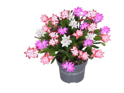 Nádherný, vánoční kaktus s průměrem květináče 13 cm. Různé barvy květů v jednom květináči.