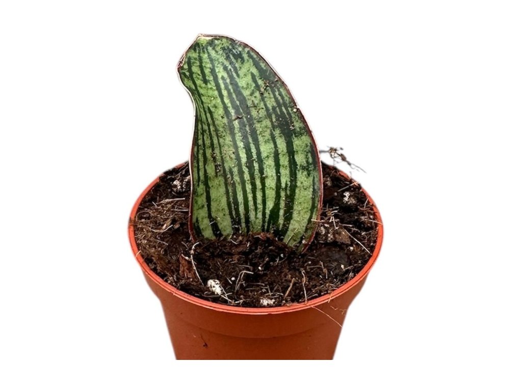 Zajímavě zbarvená, netradiční, trpasličí Sansevieria. Průměr květináče 6 cm.