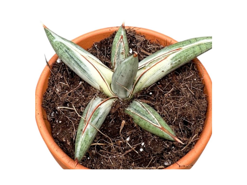 Nádherný, zajímavý kultivar Sansevierie, mix mezi klasickou laurentii a Moonshine barvou. Velmi netradiční kousek. Průměr květináče 11 cm.